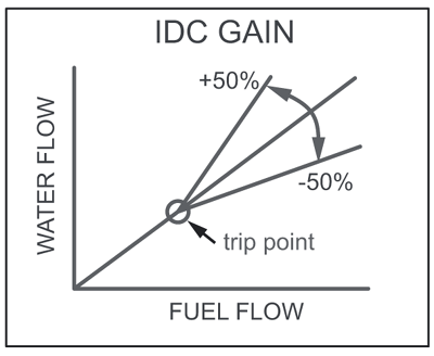 For example, if your maximum injector opening is 50%. increase the gain by x2 will allow a full linear meth flow progression (100%) But if you set gain trimmer to x4. You will reach 100% meth earlier. More throttle will only result in the same 100% flow. http://www.aquamist.co.uk/HFS3/GAIN.gif |