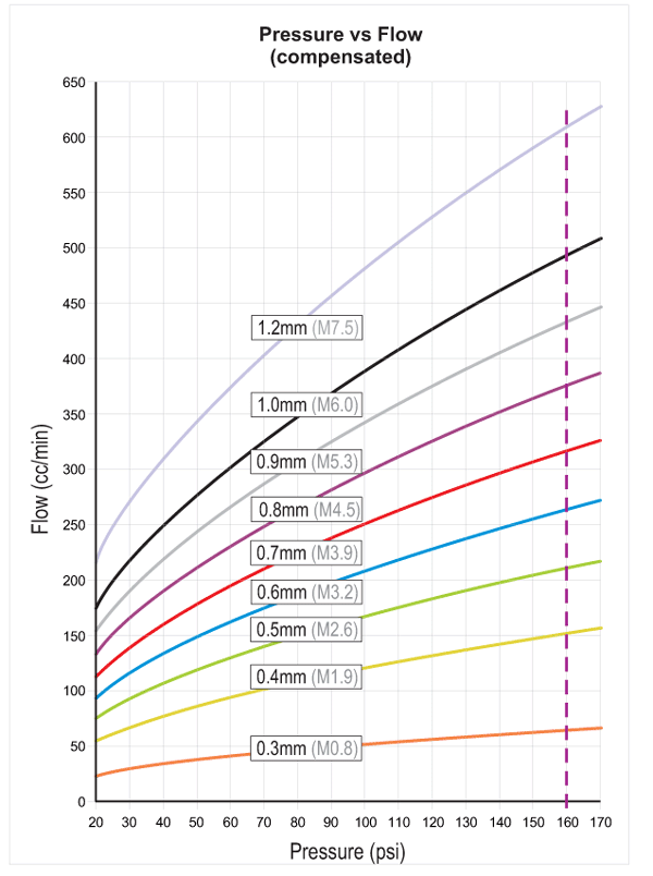 If ypu run twin valve, the system is capable of 2500cc/min. Requires larger hose ID between the tank and pump. 10mm ID will do nicely. Here is a chart for the jet vs flow: http://www.aquamist.co.uk/HFS4/jetrate+M.gif |