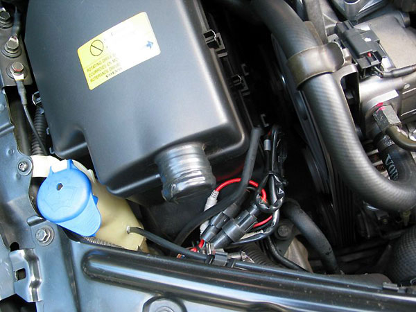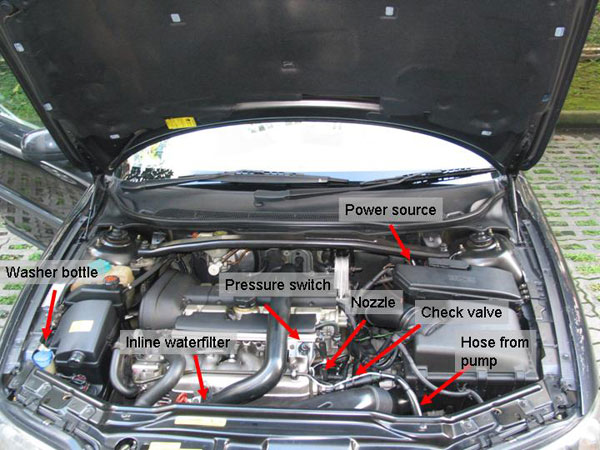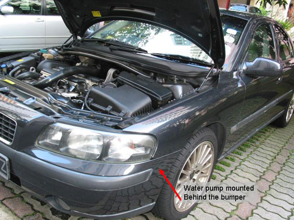 I will try to get some more pictures of the car and engine bay in general. A few words from Gerald: These are the pictures of my installation, done by Gan Motorsports my car is a Volvo S60T5 MY2001 have mounted the high pressure pump behind the front left side the bumper (my car is a RHD), drawing water from the windshield wiper tank.. the pressure switch is mounted for easy adjustability and the nozzle is actually drilled into the plastic intake air tube, bet the temp sensor and the boost sensor; mounted with a small metal plate secured with rivets and epoxy bonding ![]() ![]() ![]() ![]() ![]() ![]()