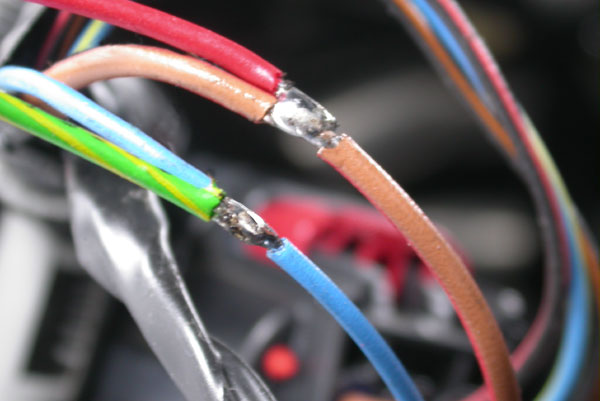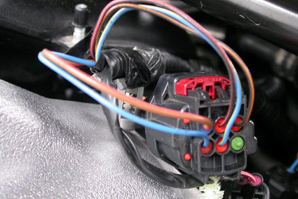 The next step is to splice in the Fuel's injector's drive wires. As the system used here is 2d based, we need to monitor the PWM signal of the fuel injector. Red wire from the FIA2 goes to the Switched +12v and the Green wire goes to one of the fuel injector's negative switch wire.