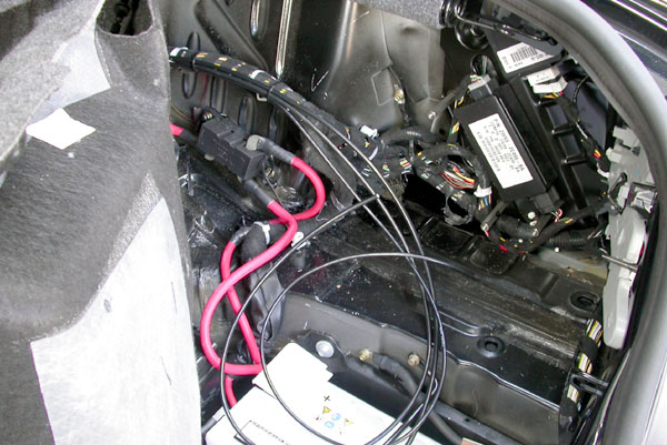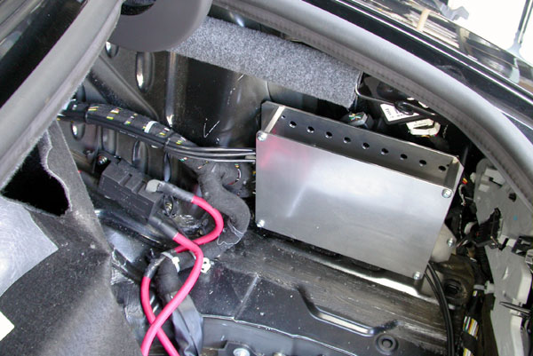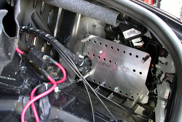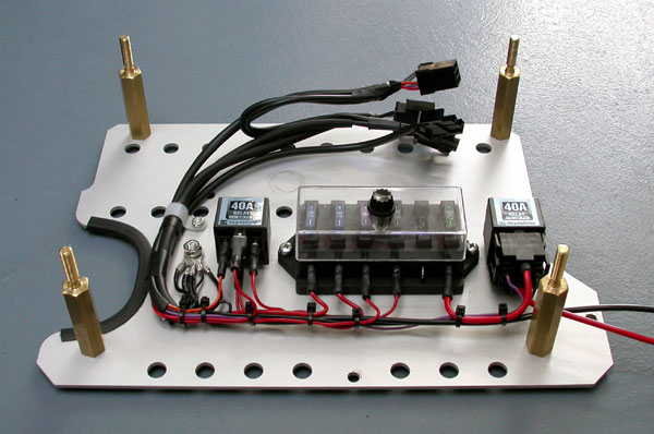 Running pipe and cables to the truck along the lower chassis frame. ![]() Trunk area un-covered, see through cable and pipe from front. ![]() Fuse panel trial install: ![]() puming components trial fitting: ![]() Assembled fuse panel: ![]() Assembled pumping components. ![]() |