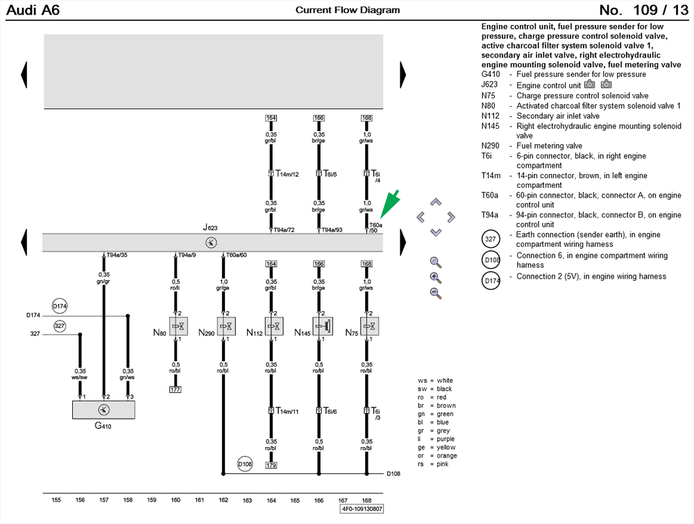 However, the Audi documentation says the N75 is Pin 50 at ECU1 (GY/WL).