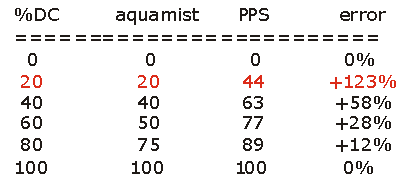 As you can see, feed the same duty cycle (%DC) yielded a complete different flow curve between the systems. Your concern regarding low RPM flow is fully justified. Until you have actually used an aquamist system, you will appreciate the difference.