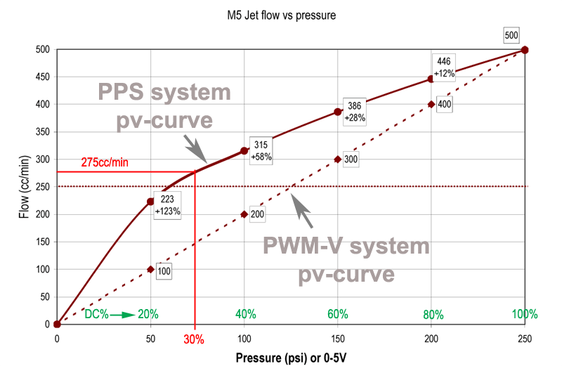 The inline valve system does not exhibit those non-linear delivery curve (bottom heavy) offered by the PPS system, I will try to illustrate: